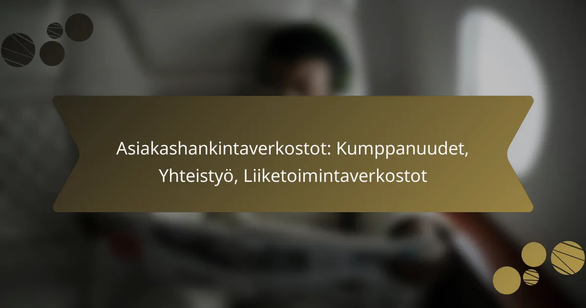 Asiakashankintaverkostot ovat keskeisiä toimijoita, jotka tukevat yritysten asiakashankintaprosessia yhdistämällä kumppanit ja asiakkaat. Tehokas verkosto mahdollistaa uusien liiketoimintamahdollisuuksien syntymisen ja vaatii huolellista suunnittelua sekä jatkuvaa vuorovaikutusta. Kumppanuuksien rakentaminen ja ylläpitäminen edellyttävät strategista ajattelua ja resursseja, jotta kaikki osapuolet voivat hyötyä verkostosta.